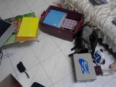tadaaa...3 beg baju, 2 box barang2 peribadi dan 1 beg cumil grey tu..